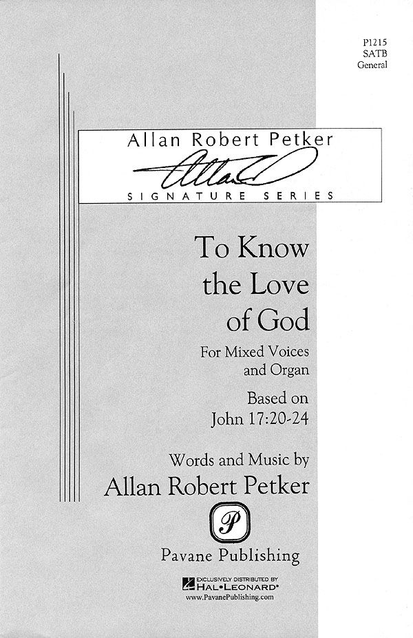 Based on John 17:20-24, this commissioned anthem celebrates God's love for us and honors both a choir director and organist. A captivating melody, this anthem explains how our understanding of God's love for us enables us to live more fully as well. Organists and choirs will find this an excellent anthem of praise.