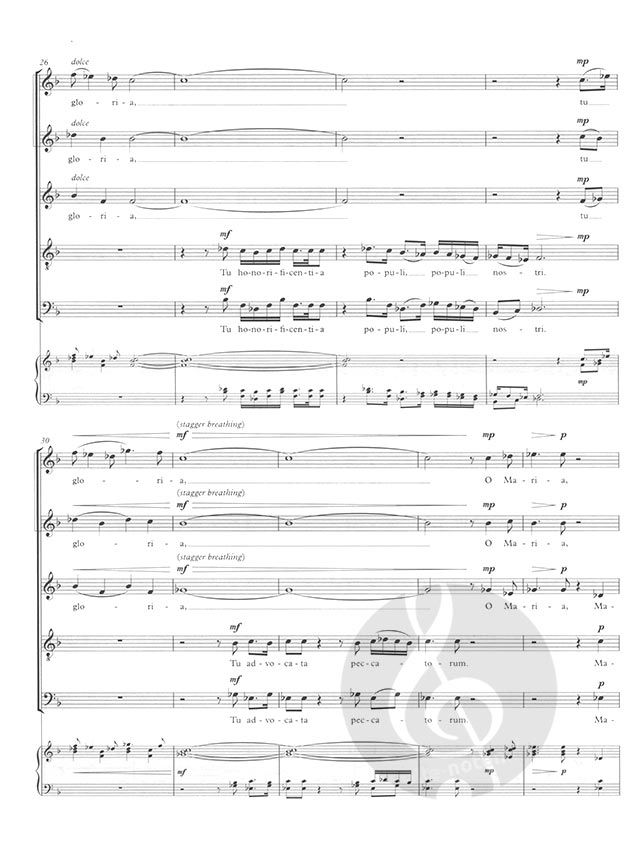 Dieses feierliche und zugleich dramatische Werk vertonte ein traditionelles lateinisches Gebet, das die Jungfrau Maria preist, mit intensiven melodischen Linien, die zugleich unerschütterlich und fesselnd sind und das Geheimnis der unbefleckten Empfängnis widerspiegeln. McDowall kombiniert modale Komposition mit harmonischer Komplexität und schafft so dramatische Momente inmitten von Anspielungen auf den Plainsong-Gesang und einen unruhigen, lydischen Schluss.