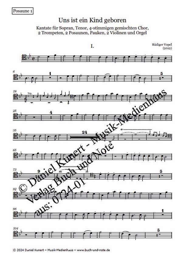 - Besetzung Soli (ST), gemischter Chor (SATB), 2 Trompeten, Pauke, 2 Violinen, 2 Posaunen und Orgel