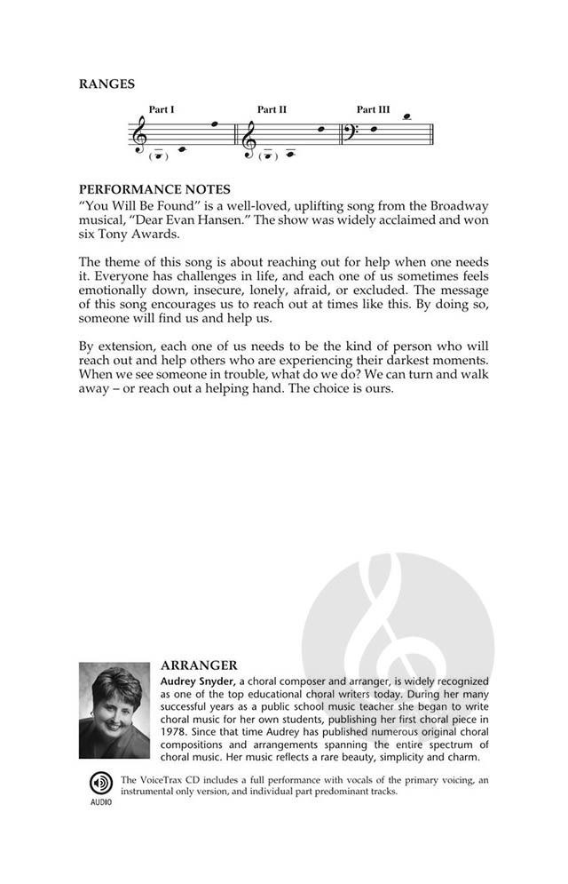 Der Chart-Hit von Natasha Bedingfield aus dem Jahr 2006 spricht die Herzen von Teenagern und Vorschulkindern an, die gerade ihre Reise in die Unabhängigkeit beginnen. Die aufmunternde Botschaft und die kraftvollen dreistimmigen Pop-Harmonien machen diesen Song zu einem fantastischen Chorstück! Separat erhältlich: 3-stimmig gemischt, 2-stimmig, VoiceTrax CD. Dauer: ca. 3:20.