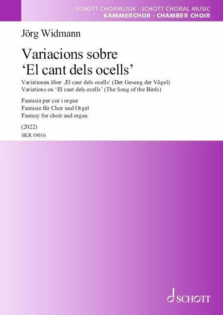 Der Stadt Barcelona und ihrem herrlichen Musiktempel Palau de la Música Catalana fühle ich mich seit vielen Jahren eng verbunden. Als mich die Anfrage erreichte, für diesen besonderen Ort, seine Barockorgel und den wunderbaren dort ansässigen Volkschor Orfeó Català ein Stück zu schreiben, dachte ich sofort an das alte katalanische Volks- und Weihnachtslied ‚El cant dels ocells‘. Dennoch studierte ich darüber hinaus eine Vielzahl anderer katalanischer Lieder – und kam doch mit Freuden zu diesem herrlichen ‚Gesang der Vögel‘ zurück und schrieb Variationen in meiner Musiksprache über diese erhabene Melodie, die nicht erst seit Pablo Casals, dem großen Cellisten, der alle seine Exilkonzerte seit 1939 mit diesem Lied beendete, zu einer Art heimlichen katalanischen Nationalhymne geworden ist. Geheimnisvoll und faszinierend bleibt für mich auch nach der intensiven Beschäftigung mit dieser Melodie, wie perfekt die Glücksverkündigung des Textes, in dem mehr als dreißig kleine und große Vogelarten die Geburt Christi feiern, mit der schwebenden und doch glitzernden Melancholie dieser Moll-Melodie harmoniert. Möge durch meine Variationen und andersartige Beleuchtung des Originals die Schönheit dieses alten Liedes noch einmal neu erfahrbar gemacht werden. - Jörg Widmann, im Januar 2023