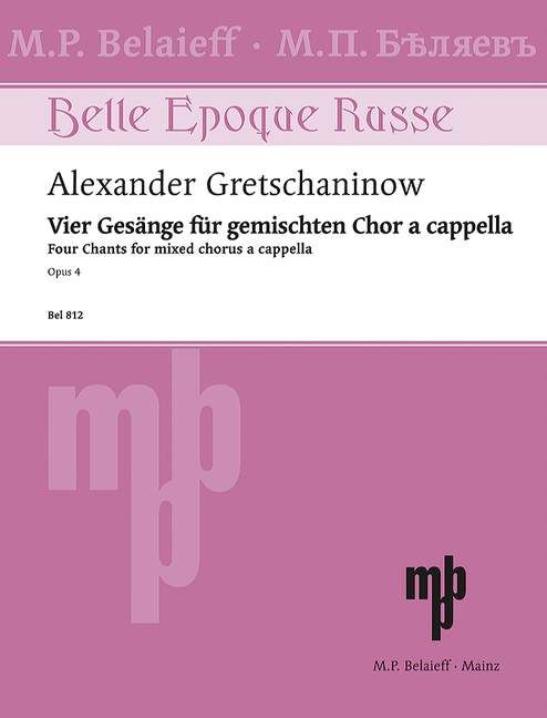Als Komponist großangelegter geistlicher Chorwerke (Liturgien, Messen) ist Alexander Gretchaninow (1864-1956) nicht nur in Russland vielen ein Begriff. Eine Rarität und wiederzuentdeckende Perle im Chorrepertoire dürften hingegen seine frühen Vier Gesänge op. 4 für 4-8stimmigen gem. Chor sein. Die noch ganz in der Tradition Tschaikowskys, Tanejews und Rimskij-Korsakows stehenden Chorsätze besingen im 'russischen' Tonfall (mal voller Weltschmerz, mal folkloristisch-heiter) Naturbetrachtungen romantischer Dichter.