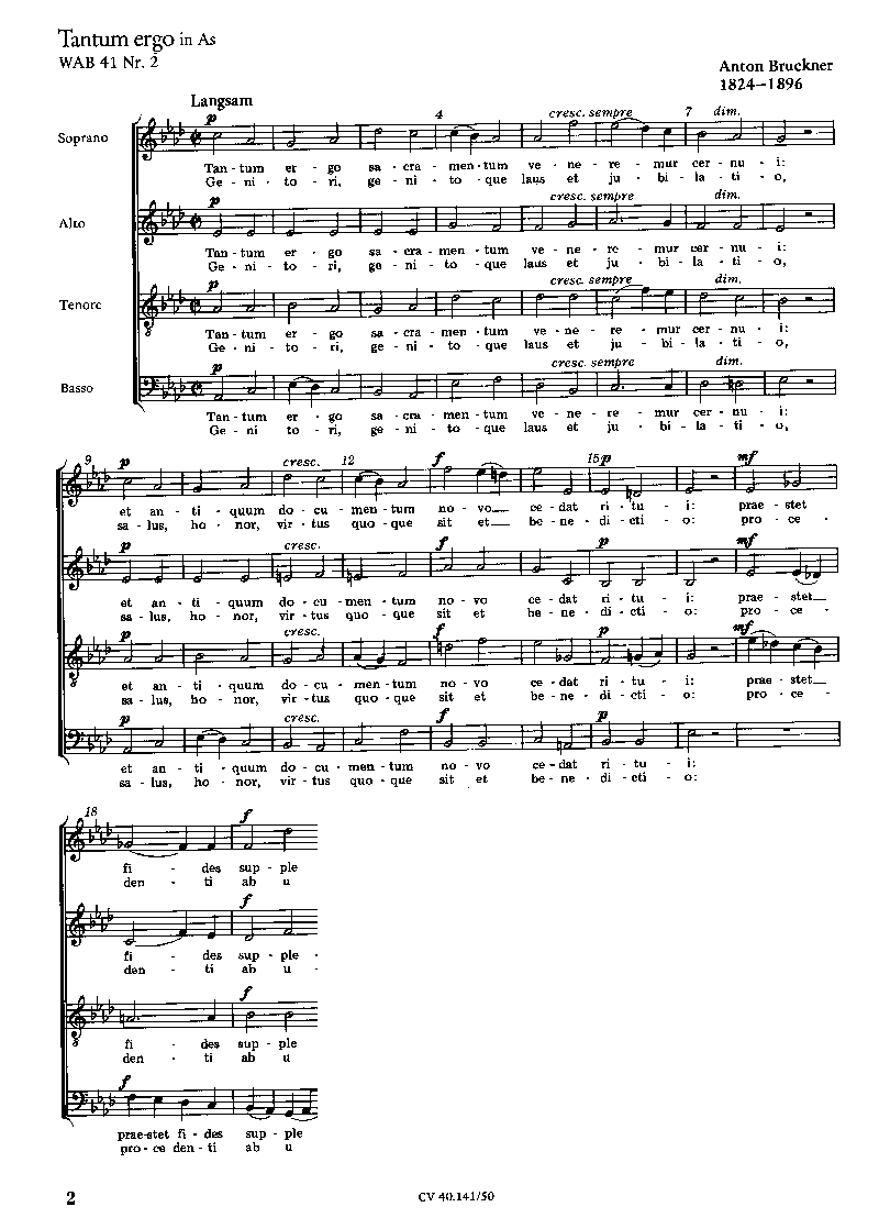Vier Tantum-ergo-Vertonungen im homophonen Satz aus den frühen Jahren des Komponisten, die er 1888 revidiert und zusammen hat drucken lassen.