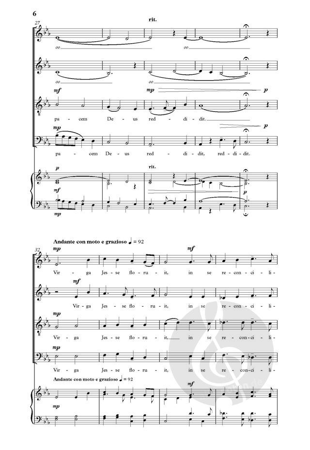 Setting a well-known Latin text, Miller mixes expressive harmony and flowing polyphony to create a touching anthem. The opening and closing sections develop the chant-like opening motif, enclosing a joyous 'Alleluia' section.