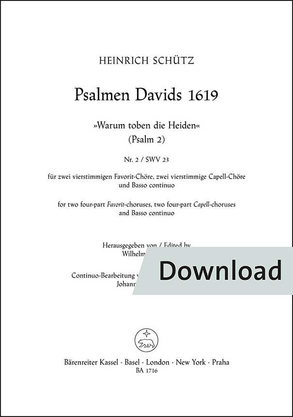 Psalm 2 aus Psalmen Davids für 2 Favoritchöre, 2 Capellchöre und Basso continuo. Urtext der Neuen Schütz-Ausgabe. Gemischter Chor (4)-SATB+SATB+SATB+SATB, Basso continuo