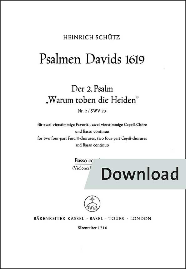Psalm 2 aus Psalmen Davids für 2 Favoritchöre, 2 Capellchöre und Basso continuo. Urtext der Neuen Schütz-Ausgabe. Gemischter Chor (4)-SATB+SATB+SATB+SATB, Basso continuo