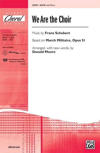 The music is Schubert's 'March Militaire.' The text is wonderfully witty. The result is an unforgettable novelty number for mixed choirs. Each section of the choir brags about being 'the very best in town' or having 'the finest sound' in the chromatic B section, before recapitulating the strong 'we are the choir' hook. Funny (to hear) ... and fun (to sing)! Featured on the 'Hooray for Hollywood!' movement DVD ALF28868.