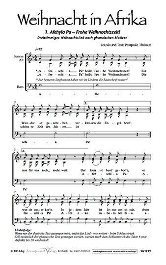 Zwei afrikanische Weihnachtslieder mit zusätzlichem deutschen Text 1. Frohe Weihnachtszeit, 2. Heute ist ein Kind uns geboren.