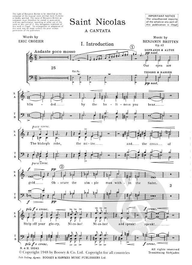 Saint Nicolas - Chorpartitur - Tenor, gemischter Chor, 4 Knabenstimmen, Streichorchester, Klavier 4-händig und Percussion