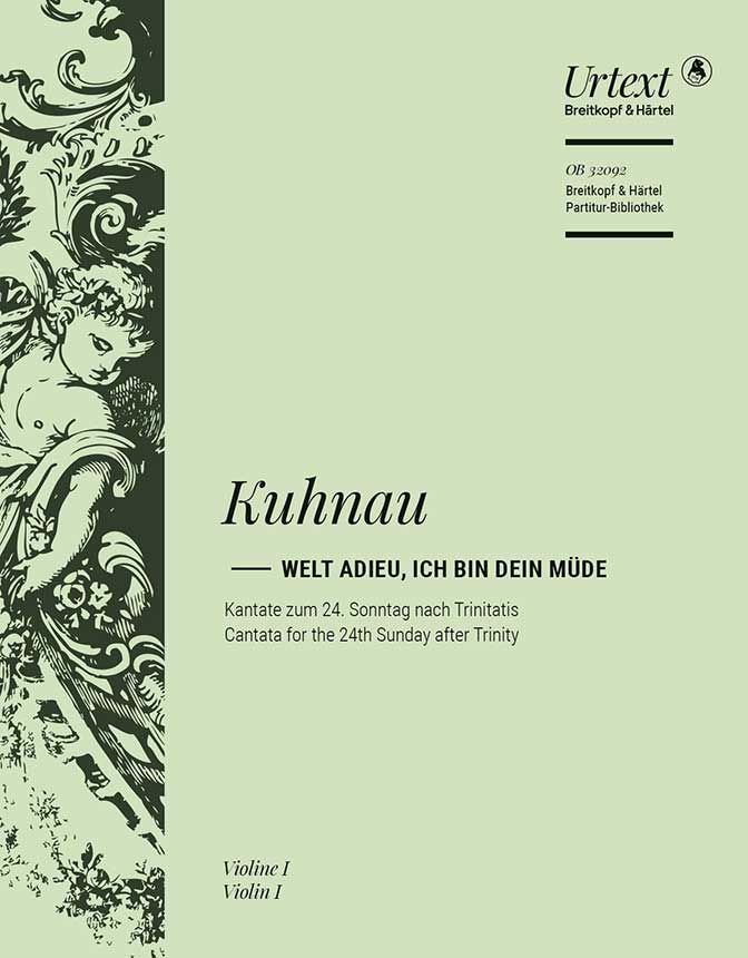 Die Kantate Welt adieu, ich bin dein müde ist bestimmt für den 24. Sonntag nach Trinitatis und damit bereits dem Ende des Kirchenjahrs. Aufgrund der Schreiber des handschriftlichen Stimmensatzes geht der Herausgeber von einer Aufführung um 1720 aus. Damit fällt die Kantate in Kuhnaus letzte Lebensjahre und kann auch aufgrund der passenden Thematik von Tod und Ewigkeit als eine Art "Schwanengesang" Kuhnaus gelten. Zudem ist es eine von nur zwei erhaltenen reinen Choralkantaten, auch wenn andere teilweise ebenfalls auf Chorälen basieren.