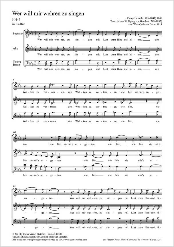 Nr. 1 aus: Fünf Lieder für gemischten Chor Op. 9, Köln 1880