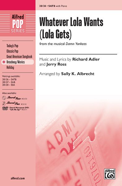 Gwen Verdon made this sassy, saucy number a hit when Damn Yankees played on Broadway in 1955. Enjoy the 'girls vs. guys' mixed arrangement, or let your ladies steal the show with the SSA version. Featured on Lift Me Up! choral movement DVD (00-38171).