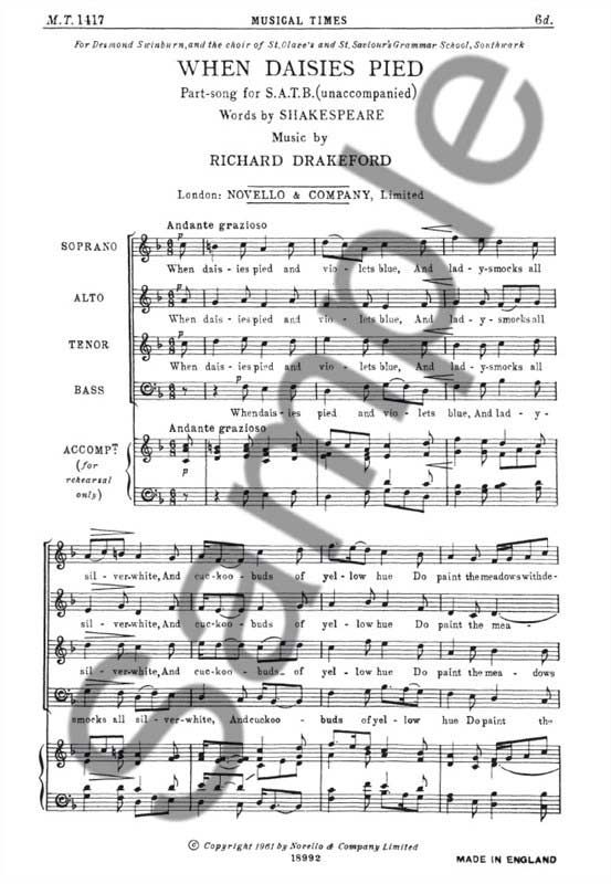 When Daisies Pied is a song for unaccompanied SATB chorus, composed by Richard Drakeford. It is a setting of words by William Shakespeare.