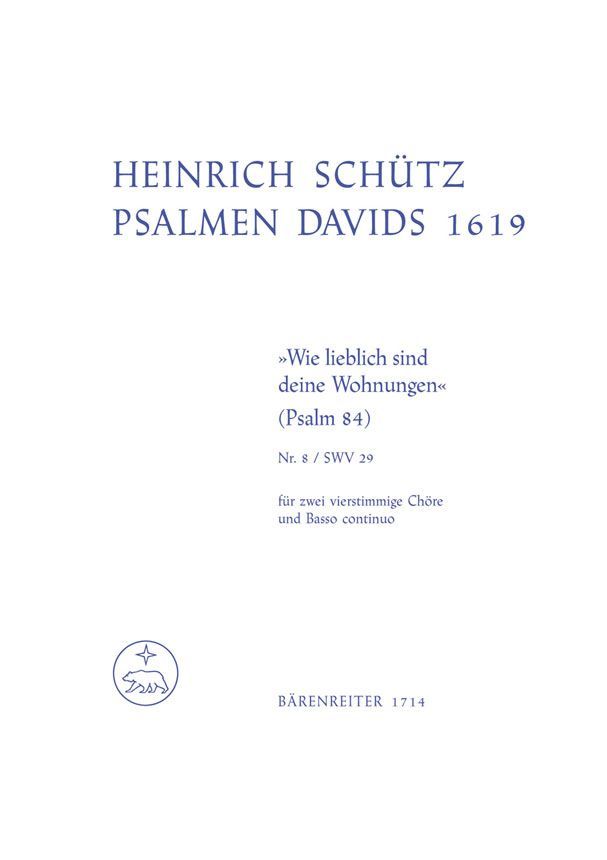 Psalm 84 aus Psalmen Davids für 2 Chöre und Basso continuo. Urtext der Neuen Schütz-Ausgabe. Gemischter Chor-SSAB, Männerchor-TTBB, Basso continuo