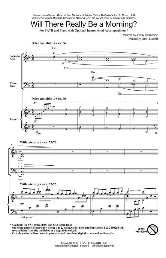 This beautiful and thought provoking text by Emily Dickinson is a wonderful vehicle for poetry discussions. A lush piano accompaniment and fluid vocal lines will shine through in your choral concert