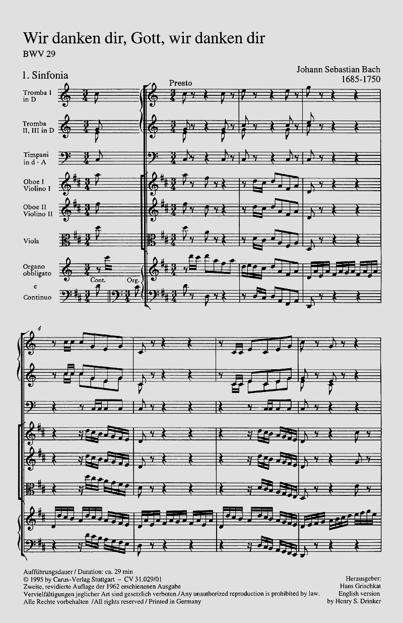 - Soli, Gemischter Chor (SATB), 3 Trompeten, 2 Oboen, Pauke, Streicher und Orgel