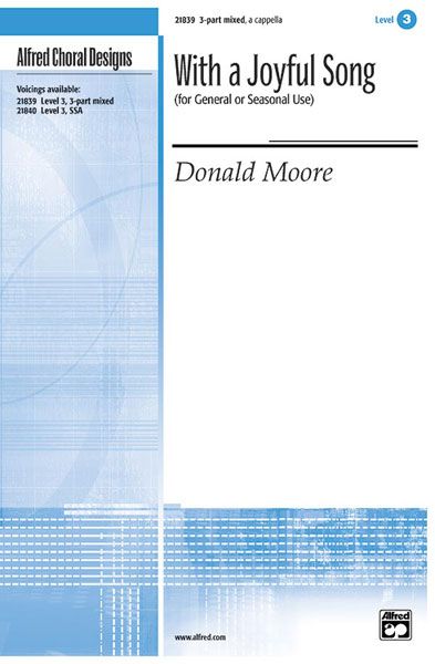 Look no further for a light madrigal to teach your three-part choir how to sing a cappella, and in tune. Donald Moore's With a Joyful Song will get the job done in a snap. It's so easy to learn and sing this charming and festive original. ABA form, modest vocal ranges, and simple intervals create an easy-to-achieve contrapuntal piece. Terrific as a first-of-its-type composition. Appropriate for general or seasonal use.