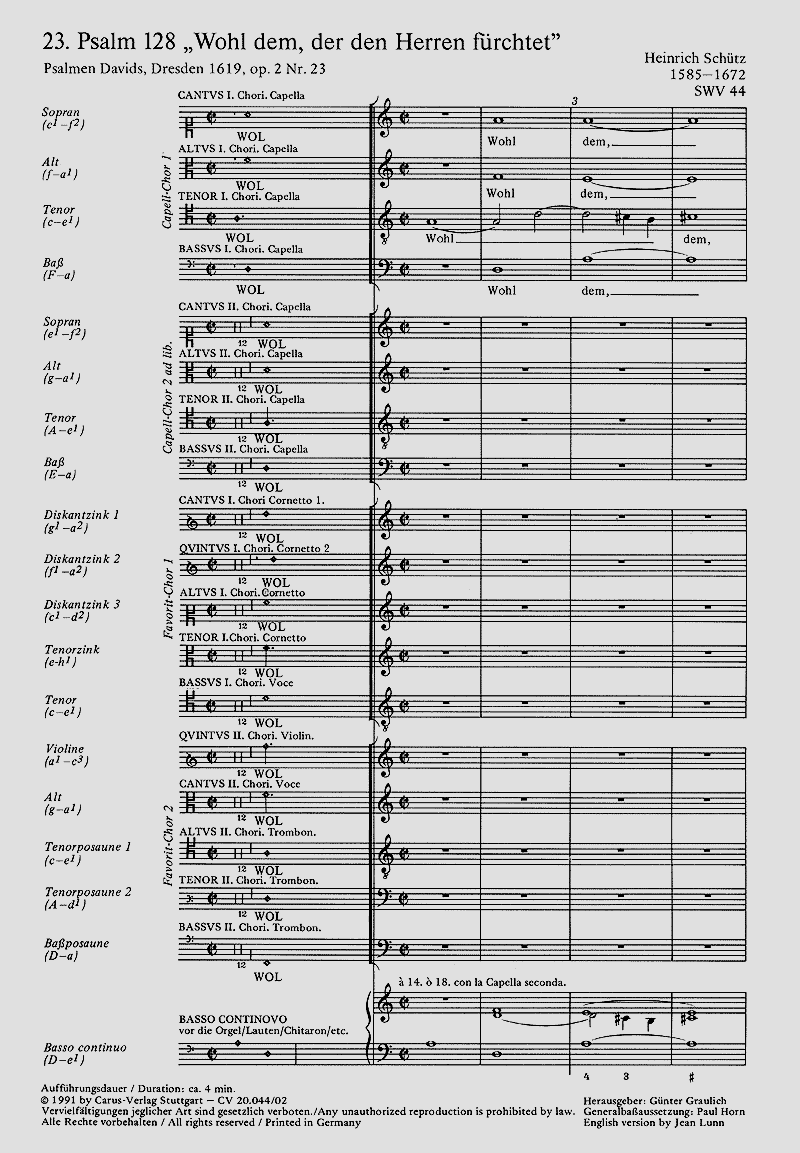 Fav T, Cap SATB, [SATB], 4 Zk/A, Vl, 3 Trb Cb, Org - Tonart d-dorisch