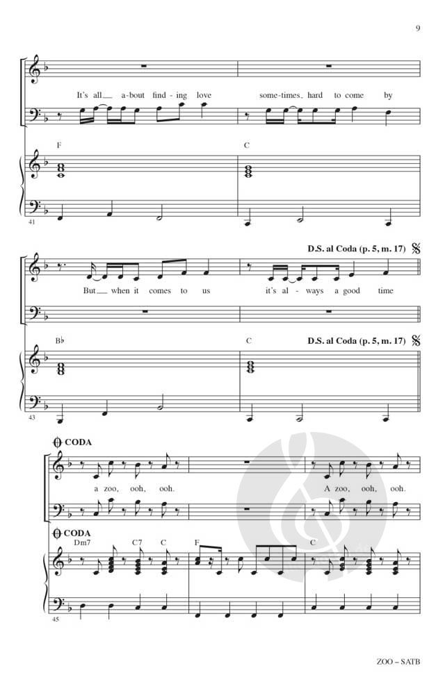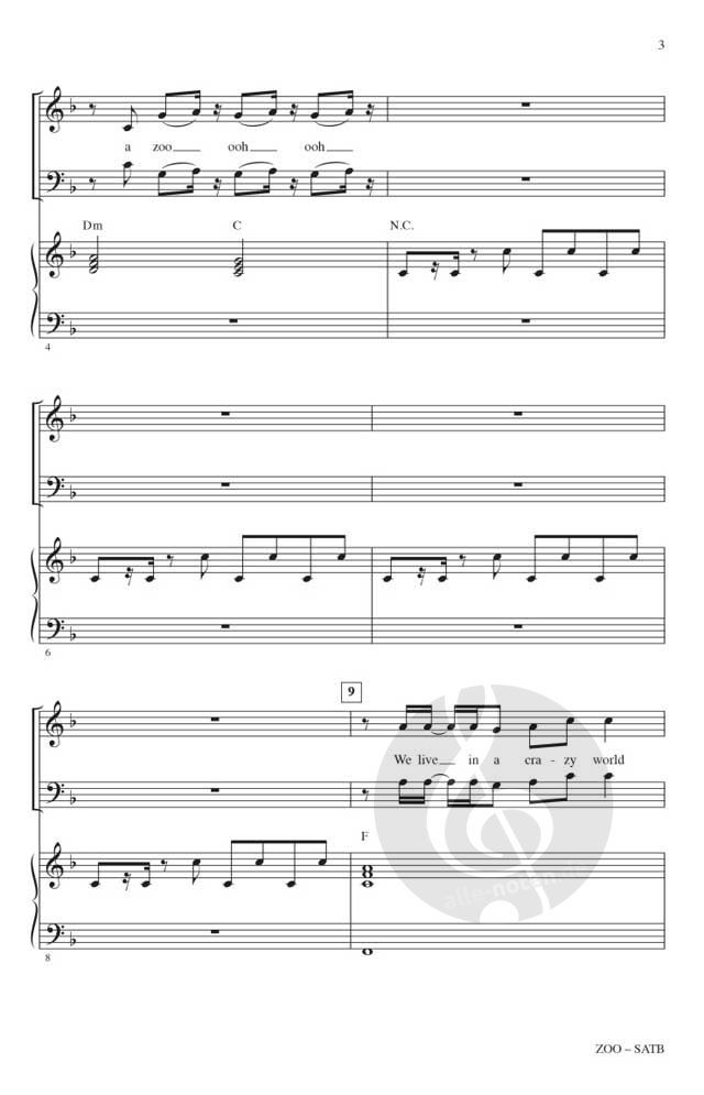 Bringen Sie die Aufregung der Stadt auf Ihre Konzertbühne mit diesem energiegeladenen Chorarrangement aus Zootopia 2! Mit Musik von Ed Sheeran, Shakira und Blake Slatkin fängt diese dynamische Vertonung von Mac Huff den wilden Geist und den ansteckenden Groove des Originalstücks ein. Mit treibenden Rhythmen, kühnen Unisono-Momenten und lebhaften Harmonien ist "Zoo" ein Show-Stopp, den Sänger und Publikum lieben werden.