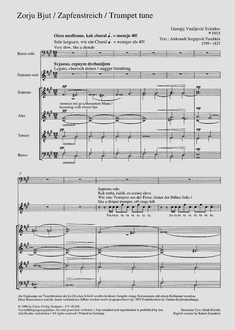 Zapfenstreich - Trumpet tune - Soli S, Bar, Coro SSAATB