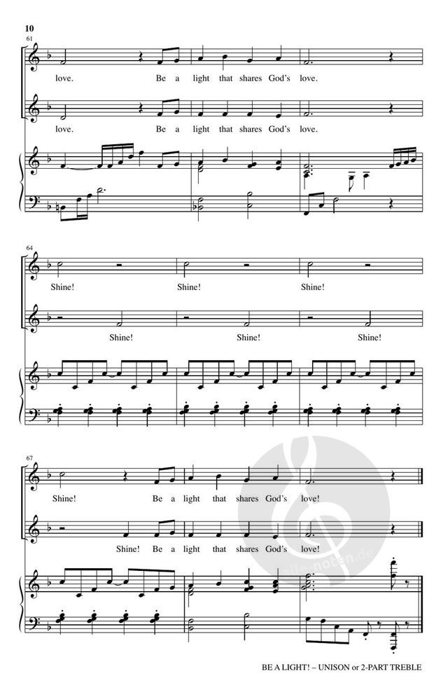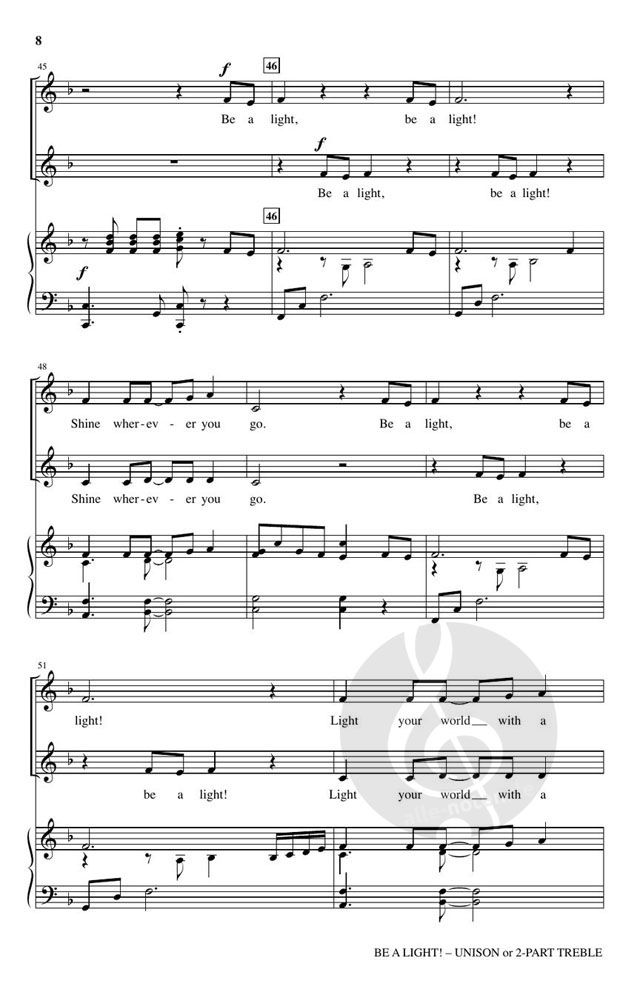 This spirited anthem highlights the transformative message found in Matthew 5:14-16: You are the light of the world. Reminding us to live a life that shares God's love, choirs will enjoy singing the anthem's cheerful melody set in a comfortable one octave range.