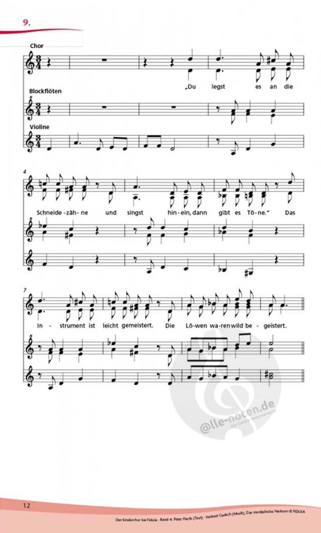 - Opt. Besetzung Kinderchor (1-3-stimmig), Blockflöte, Horn, Klarinette und Instrument