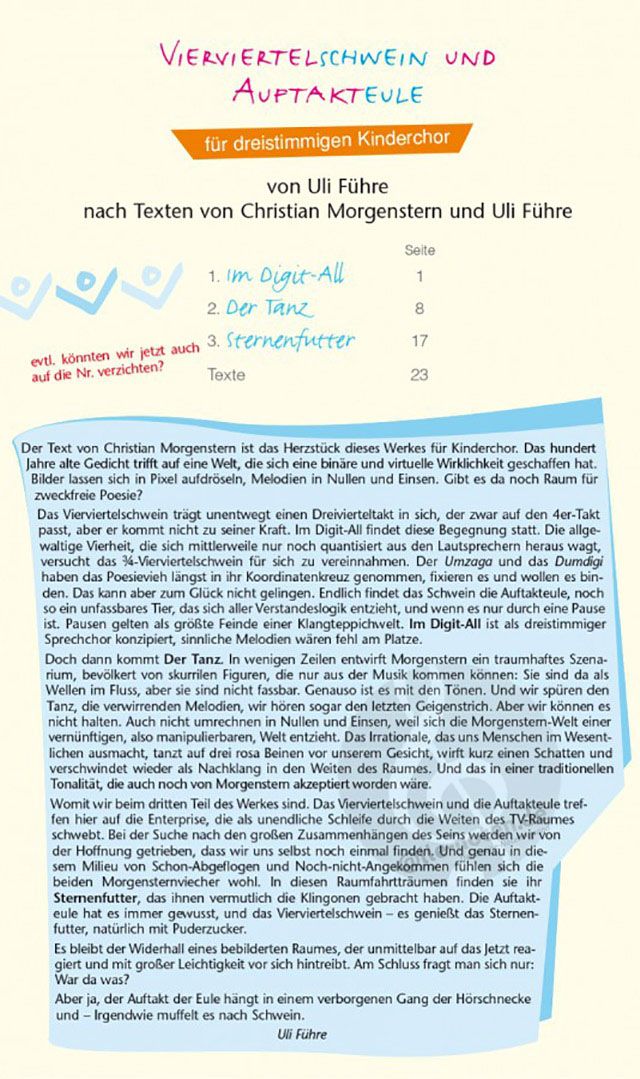 > Für 2-stimmigen Chor, mindestens 17 Akteure und Klavier