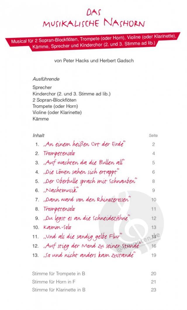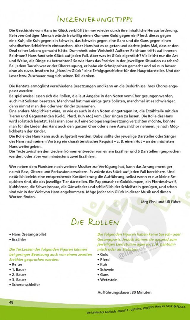 Zum Aufführungsrecht: Schulen und andere Amateur-Ensembles erhalten dieses auf einfache Weise und ohne weitere Gebühren durch den Mindestbezug von 20 Exemplaren dieses Heftes (eine Abrechnung über die GEMA ist in diesem Fall nicht nötig und auch nicht möglich). Wird das Werk nicht szenisch, also konzertant, öffentlich aufgeführt, ist hingegen eine Anmeldung bei der GEMA / AKM / SUISA erforderlich.
