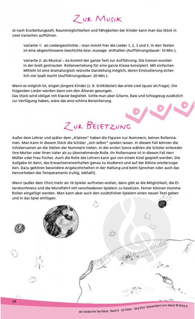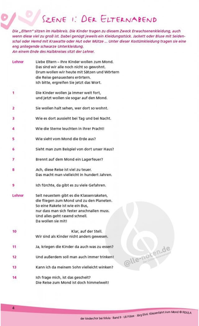 Immer wieder werden die Menschen von der Sehnsucht nach der Ferne ergriffen. Klassenfahrten waren früher Wanderungen auf die nächste Burg, heute geht es nach Berlin, London, New York. Und ein Ausflug ins All, gar zum Mond, ist immerhin in technischer Reichweite. Reisen haben ihr Gutes. Gerade durch den Abstand bekommt man immer wieder eine neue Sicht auf den eigenen Lebensraum. Das ist in der jetzigen Menschheitsphase ganz wesentlich. Unser zerbrechlicher Planet schwebt einsam im großen Raum, und unsere Aufgabe ist es, ihn zu schützen. Es gibt soviel Schönheit auf dieser Erde, für die es sich zu leben lohnt. Und genau diesen Blick bekommen die Kinder mit diesem heiter-fiktiven Ausflug zum Mond. Ein Stück mit viel Phantasie und doch höchst realem Bezug.