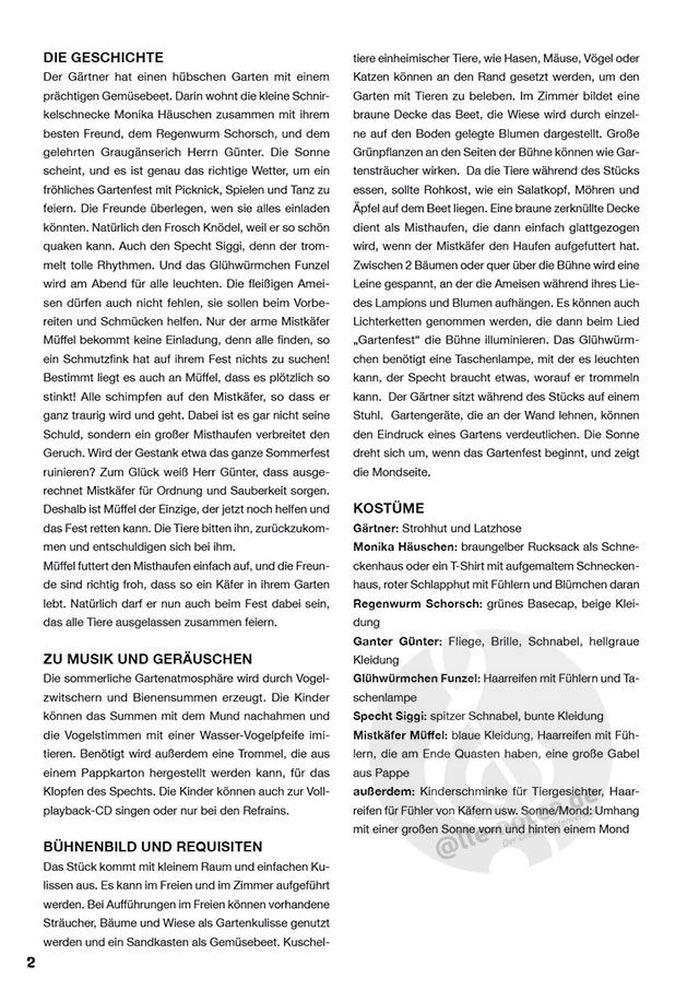 Mit Hilfe des umfangreichen Aufführungsmaterials und der Begleit-CD können Erzieher, Lehrer und Eltern einen ganz besonderen Höhepunkt bei Sommerfesten und Weihnachtsfeiern gestalten.