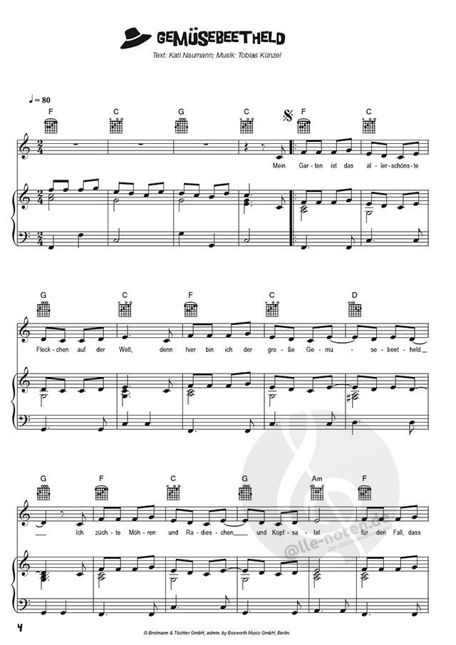 > Texte, Gitarrenakkorde und Klavierarrangements