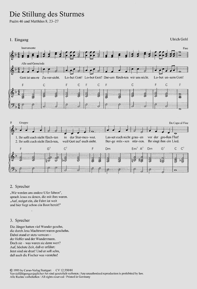 Ein Singspiel über Matthäus 8, 23-27 und Psalm 46 - Leichtes Singspiel zu biblischem Text für den gemeinsamen Gottesdienst von Kindern und Erwachsenen. Kinderchor, Soli, Spr, Tast, [ad lib mit Melodie- und Rhythmusinstrumenten (auch Orff-Instrumentarium)].
