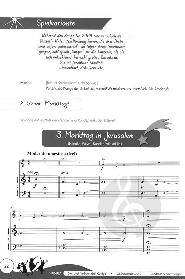 Andreas Schmittberger versteht es einmal mehr, das Publikum zu begeistern: Sein neuestes Werk quillt über vor raffinierten, witzigen Ideen sowie liebevollen Details und bietet Möglichkeiten zu opulenten, stimmungsvollen und fantastischen Bühneneffekten, kann aber auch ganz schlicht aufgeführt werden. Dazu kommt eine Musik, die ihresgleichen sucht: Klezmerklänge treffen auf orientalisches Flair gemixt mit groovigem Rock, Blues, berührenden Balladen und weihnachtlichen Choralklängen.
