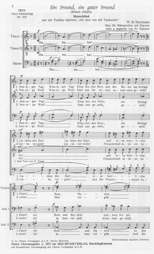 aus dem Film 'Die drei von der Tankstelle' für Männerchor a cappella oder mit Klavier