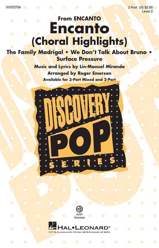 This delightful medley features three favorite songs from Disney's animated movie, Encanto: "The Family Madrigal," "We Don't Talk About Bruno," and "Surface Pressure." Each song highlights the magic and charm found in this tale about an extraordinary Colombian family.