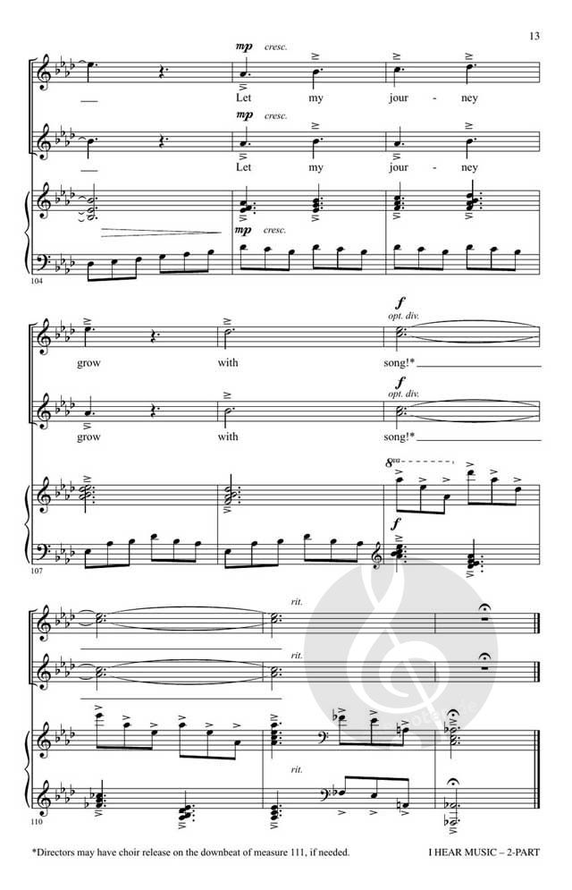 Feiern Sie die Kraft der Musik in diesem kreativen Werk, das folgende Konzepte enthält: eine Melodie, die für einen leichten Zugang zur Bruststimme konstruiert ist, einen singzentrierten Ton in der Kopfstimme, um den Sängern zu helfen, Vertrauen aufzubauen, und eine Gegenmelodie, um parallele Terzen einzuführen. Eine dynamische Klavierbegleitung und eine optionale Flöte unterstützen diese durchdachte Komposition.