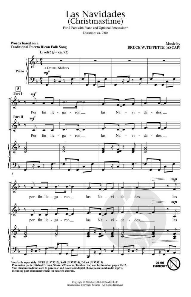 Eine lebhafte Klavierbegleitung mit würziger Perkussion unterstützt dieses originelle Werk mit dem traditionellen puertoricanischen Text. Ihr Weihnachtskonzert wird durch die synkopischen Rhythmen, die hellen Harmonien und die energischen Unisoni glänzen, die sich zu diesem Juwel für die Weihnachtszeit verbinden!