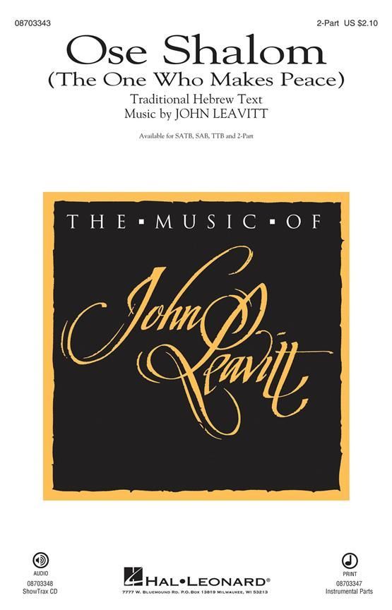 John Leavitt has brilliantly set this text from the Jewish Liturgy in this new original work for choir. With a simple message of peace, it is a fitting work for troubled times. Optional klezmer instrumentation includes violin, clarinet, cello and bass. Available for SATB, SAB, 2-Part, Instrumental Pak and ShowTrax CD. Performance Time: Approx. 3:40.