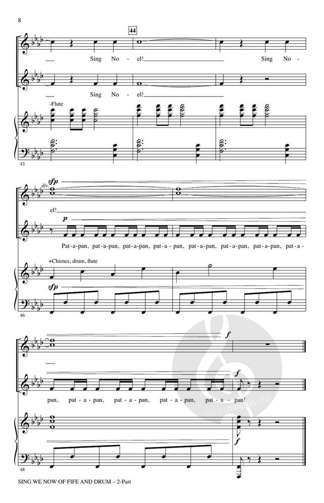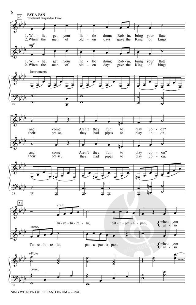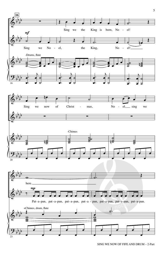 Diese energiegeladene und schwungvolle Zusammenstellung von "Sing We Now of Christmas" und "Pat-a-Pan" bringt neues Leben in diese bekannten Weihnachtslieder. Ein großzügiges Maß an Unisono-Gesang zusammen mit sich wiederholenden Texten und melodischen Phrasen geben wachsenden Sängern und Chören Kraft und Selbstvertrauen.