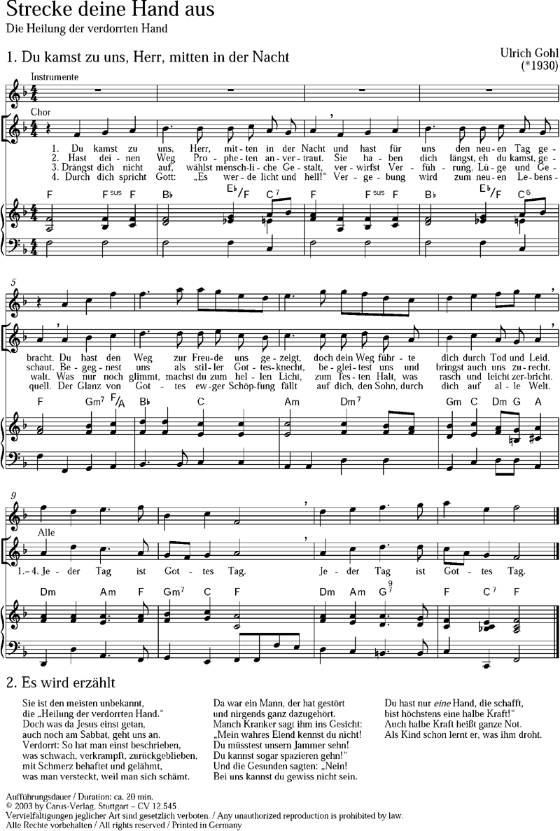 Die Heilung der verdorrten Hand - Kinderchor, Soli, Spr, Tast, [ad lib mit Melodie- und Rhythmusinstrumenten]