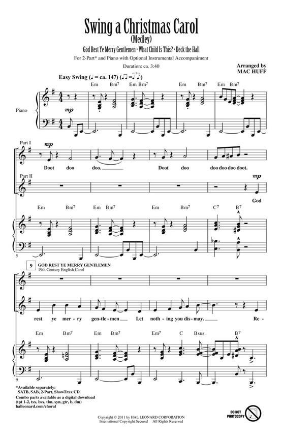 Hier ist ein einfaches, swingendes X-Minuten-Medley dreier beliebter Weihnachtslieder in einem frischen, zeitgenössischen Stil, der jedes Weihnachtsprogramm aufpeppen wird! Ideal für Pop-, Jazz- und Konzertchöre, enthält es: God Rest Ye Merry, Gentlemen, What Child Is This? und Deck the Hall. Dauer: ca. 3:40.