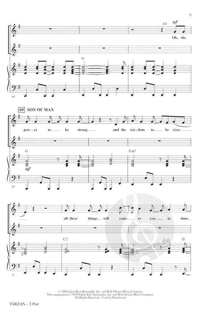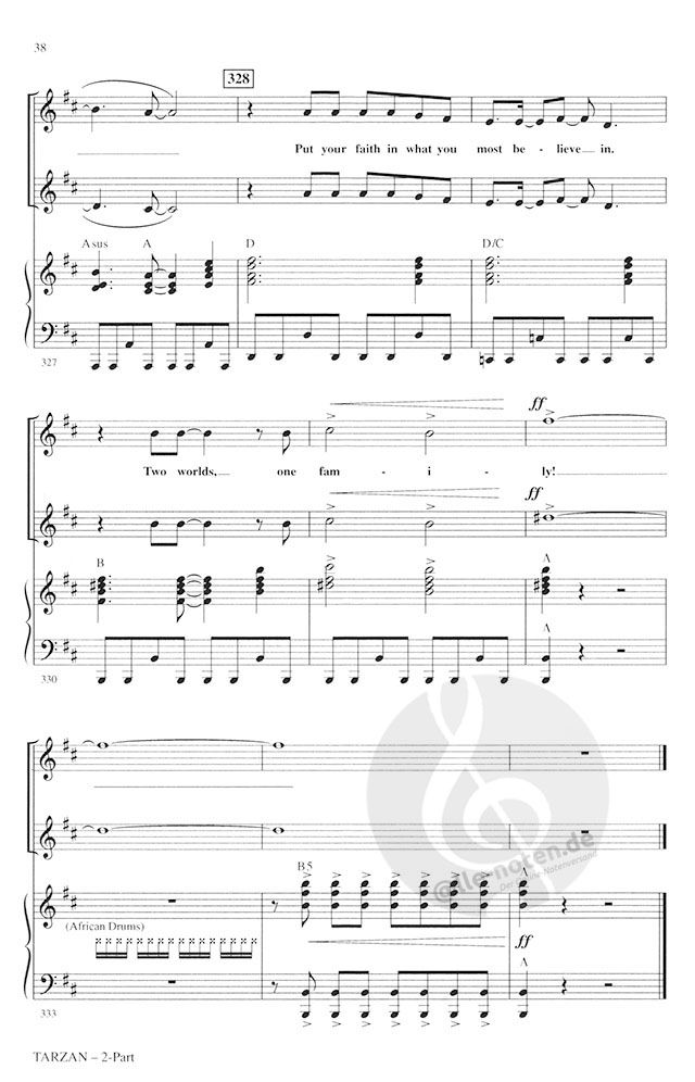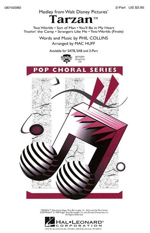 Captivate your audience with these powerful messages from the latest Walt Disney hit, with great songs by pop powerhouse Phil Collins. Packed with positive energy! This medley includes: Two Worlds, Son of Man, You'll Be in My Heart, Trashin' the Camp, Strangers Like Me, Two Worlds (Finale). Available: SATB, SAB, 2-Part, ShowTrax CD. Performance Time: Approx. 10:30.