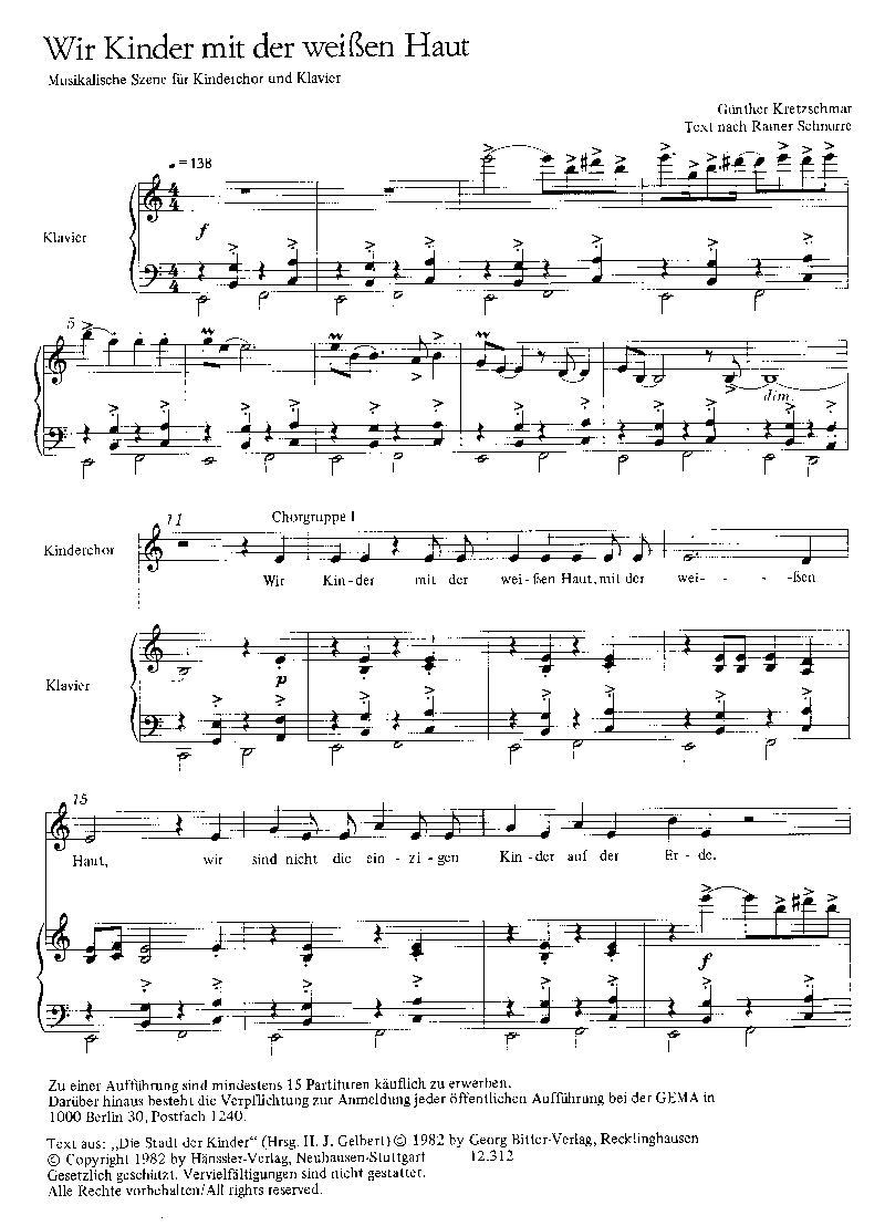 - Besetzung 3 Kinderchöre (1-stimmig) und Klavier