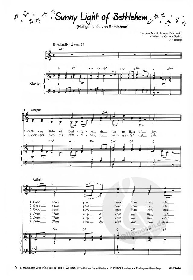 - Noten (Melodie, Text und Akkorde)