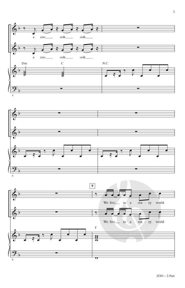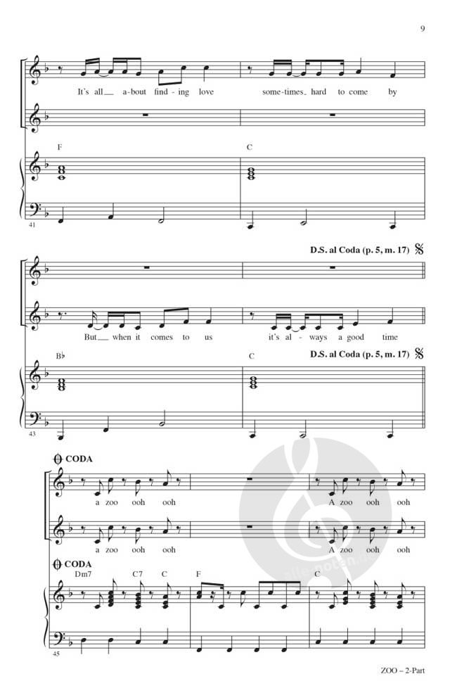 Bringen Sie die Aufregung der Stadt auf Ihre Konzertbühne mit diesem energiegeladenen Chorarrangement aus Zootopia 2! Mit Musik von Ed Sheeran, Shakira und Blake Slatkin fängt diese dynamische Vertonung von Mac Huff den wilden Geist und den ansteckenden Groove des Originalstücks ein. Mit treibenden Rhythmen, kühnen Unisono-Momenten und lebhaften Harmonien ist "Zoo" ein Show-Stopp, den Sänger und Publikum lieben werden.