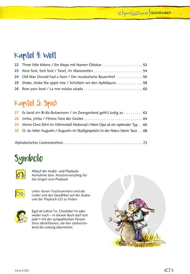 Für das Singen in der Schule sind Quodlibets besonders für Kinder und Jugendliche von 6 bis 14 Jahren eine tolle Möglichkeit um mehrstimmiges Singen ganz mühelos zu erlernen. Der neueste Band der Schulchorbuch-Reihe chorissimo! bietet hierfür nicht nur 30 Quodlibets - also jeweils mindestens zwei Lieder, die sich wunderbar zum Kombinieren eignen - sondern auch vielfältige Ideen, Tipps und Anregungen. Der Aufbau der Mehrstimmigkeit, Probenmethoden, kreative Umsetzungsideen im Raum und Bewegungsideen werden genauso thematisiert wie leichte Begleitmodelle für Stabspiele.