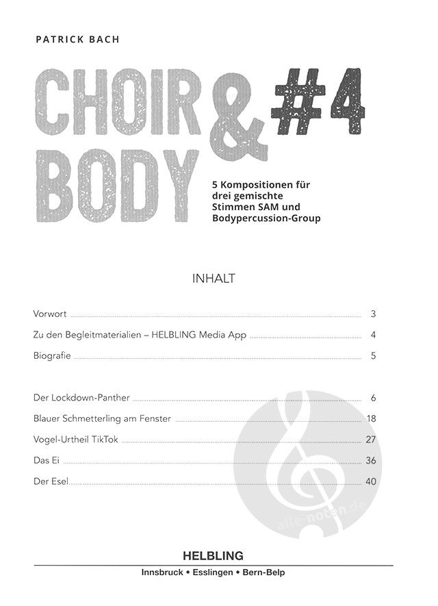 Band 4 der Reihe choir & body bietet mit tierischen Songs einen neuen Zugang zu Lyrik und Gedichten mit vollem Körpereinsatz. Drei der Songs wurden beim renommierten Valentin-Becker-Kompositionswettbe...