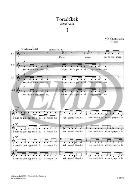 Frauenchor (SMezA) mit Sopran-Solo und Klavier.