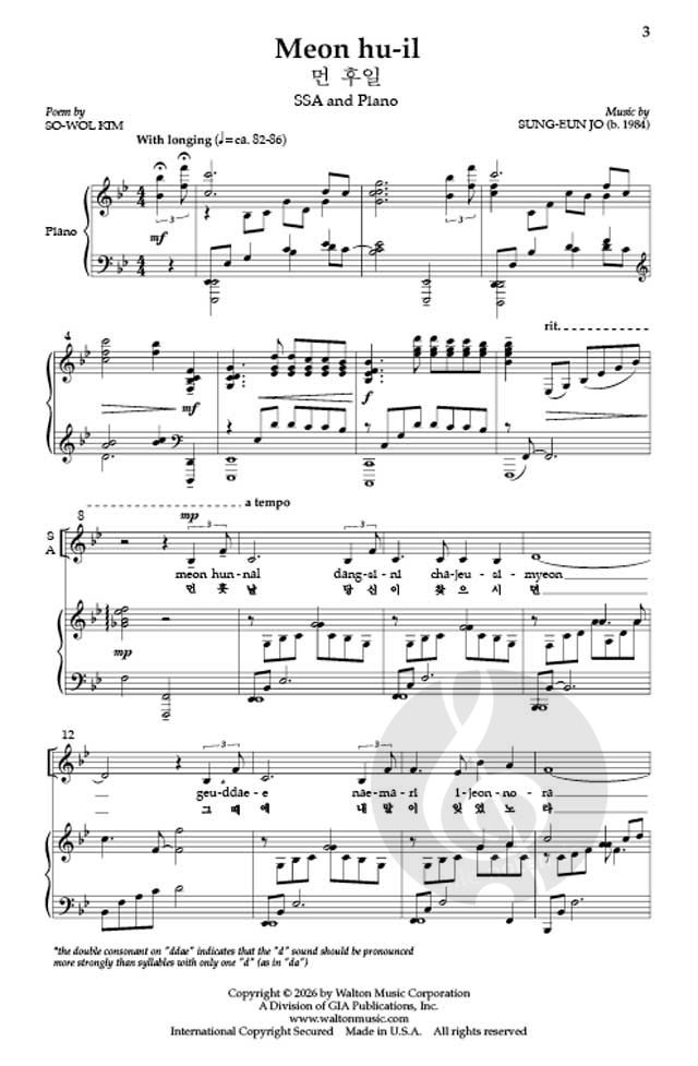 Meon Hu-il verwendet ein Gedicht des führenden koreanischen Dichters So-Wol Kim (1902-1934), das tiefe Sehnsuchtsgefühle ausdrückt. Eine erhabene Klavierbegleitung unterstreicht die Schönheit und Dram...