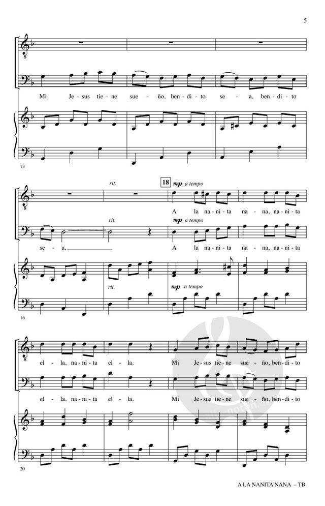 Ihre weniger stimmgewaltigen Ensembles werden diesen Bestseller lieben, der jetzt auch für TB-Chöre erhältlich ist. Zwei beliebte spanische und englische Wiegenlieder erklingen nacheinander in diesem sanften Chorwerk. Das Klavier wiegt sich sanft unter dem beschwingten Text und schafft ein einzigartiges Arrangement der bekannten Melodien. Eine ruhige und zarte Auswahl für Ihr Weihnachtsprogramm! Vorschläge für die Probenarbeit inklusive.